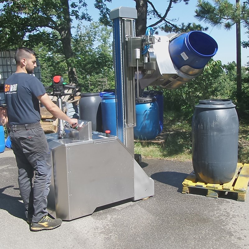 Equipped with an efficient lateral drum tilter, it is the ideal product to move drums without the footprint of the trolley.