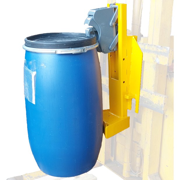 The drum is automatically lifted, transported and emptied without the operator having to leave the forklift.