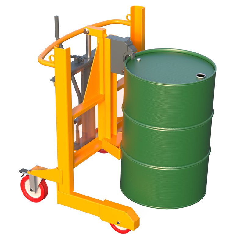 Данная тележка предназначена для захвата верхний валик или фланец металлических, пластиковых и картонных бочек.