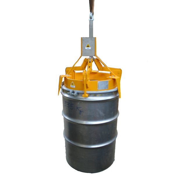In addition to these clamps that fasten the drum on the upper edge or in the cylindrical part, VEAB has introduced other mechanical and hydraulic equipment for handling drums and various objects such as the BS107 drum-holder clamp and the BS105 drum clamp, which are particularly suitable for certain types of plastic drums, and the entire series of BS101 clamps for handling drums and reels with hoists, gantry cranes and cranes in general.